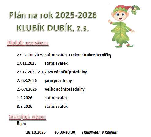 Do našeho klubíku se děti těší. Hravá a přátelská atmosféra, zábavné aktivity a milý kolektiv zaručí, že Vaše děti u nás budou spokojené.